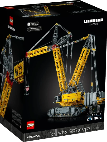 Hatalmas és erős. Ez lesz a következő építési kihívásod. A felnőttek számára készült LEGO® Technic Liebherr LR 13000 lánctaplas daru (42146) modell 99 cm magas, és a LEGO Technic választék egyik legnagyobb készlete (2023. augusztusi állapot szerint). Részletgazdagságával és valósághű mozgásával a világ egyik legerősebb daruja előtt tiszteleg.